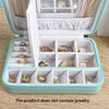 Práctica caja de almacenamiento de joyas con diseño rectangular y cremallera doble, espejo interior y compartimentos múltiples. Su diseño elegante y portátil la convierte en el organizador de viaje ideal para anillos, pendientes y collares.