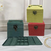Caja organizadora de joyas elegante, fabricada en cuero sintético tipo ante, con 3 compartimentos amplios, cierre seguro y forro interior suave que protege anillos, pulseras y collares. Disponible en verde oscuro, negro y rosado. Perfecta para mantener tu joyerÃa ordenada con estilo.