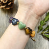 Explora nuestras pulseras de cristal, cuarzo y resina con formas de corazón. Combínalos con cadenas negras o collares bohemios de cuentas y chakras para crear un look auténtico y vibrante.