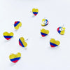 Pendientes en forma de corazón con los vibrantes colores amarillo, azul y rojo de la bandera colombiana. Hechos en acrílico con postes de acero inoxidable, son ligeros y resistentes. Ideales para eventos patrios, regalos o para mostrar con orgullo tu amor por Colombia.