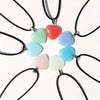 Hermosos collares de cuarzo luminoso en forma de corazón, con cordón de cuero ajustable negro. Brillan en la oscuridad y vienen en colores múltiples. Perfectos para regalos originales o eventos nocturnos.